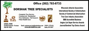 Another nearby resource are the Certified Arborists at Dorshak Tree Specialists who we call when we need an aborist to help answer questions or concerns. They are located several blocks from us in Butler, WI.